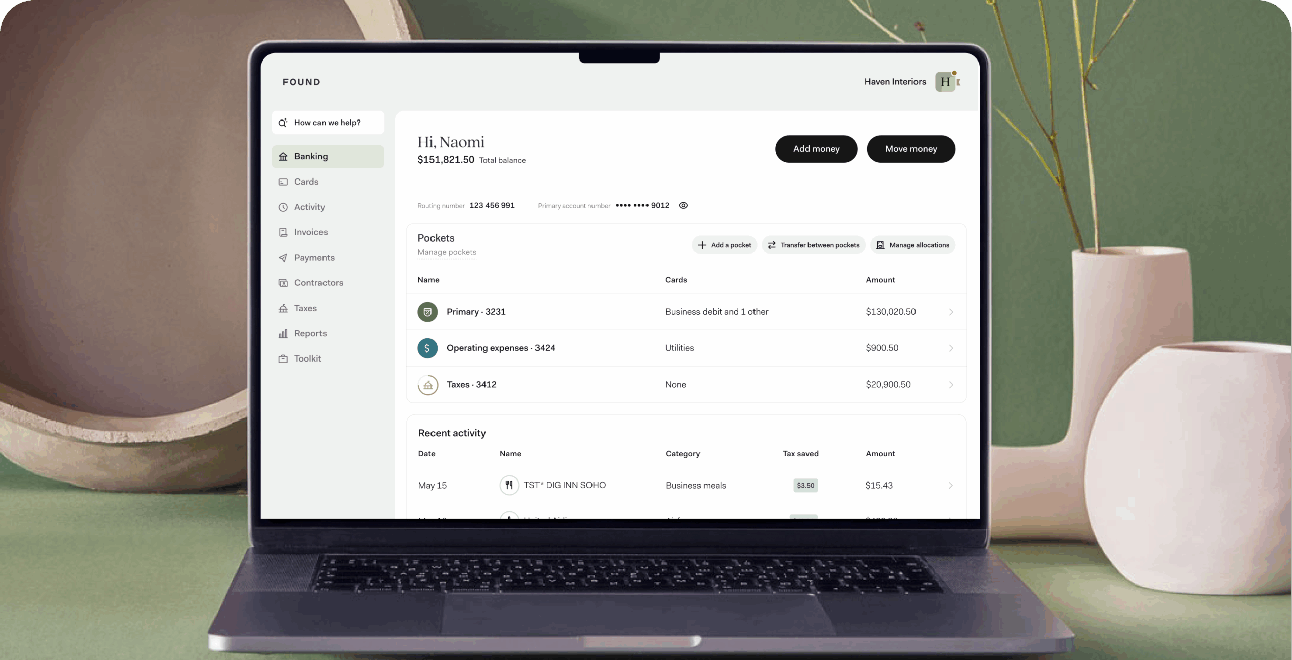 Found is your back office, consolidated into one, seamless platform. Get paid, send payments, manage your cash flow, and stay ahead of tax season–right where you bank.