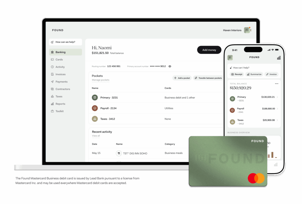 ²*The Found Mastercard Business debit card is issued by Lead Bank pursuant to a license from Mastercard Inc.