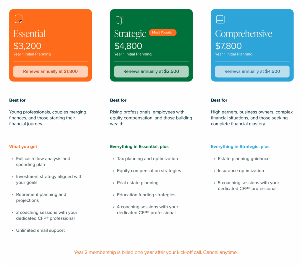 Pricing is transparent and focused only on giving you unbiased advice. No AUM fees. No commissions. No pressure.