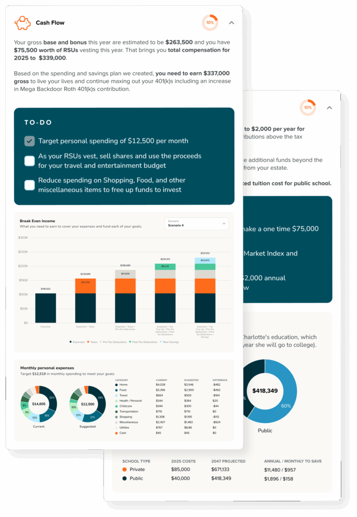 You’ll work with a CFP® professional who will dive deep into your finances, your dreams, and your life, and generate a crystal clear plan to reach your goals.
